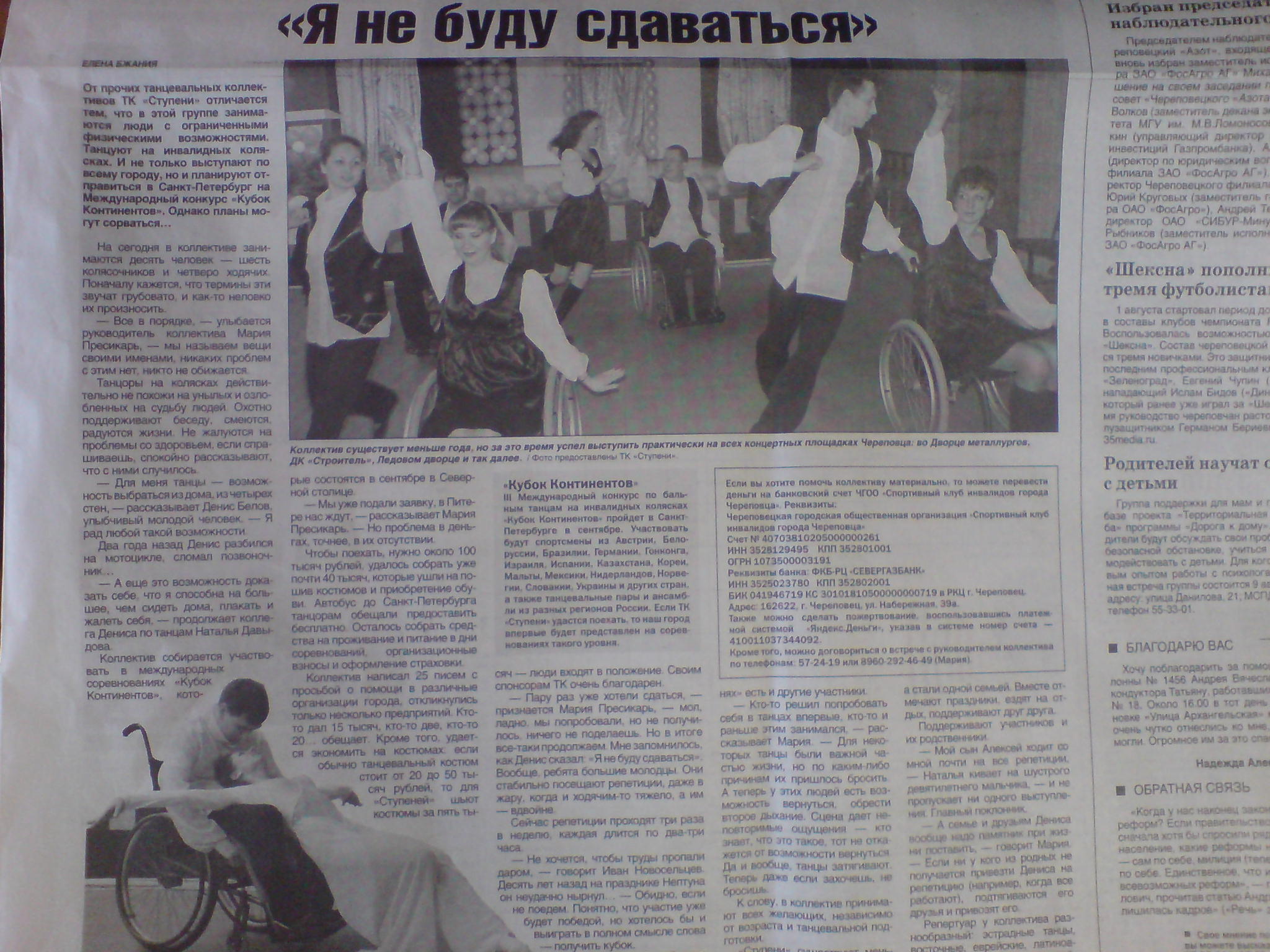 Читайте про ТК «Ступени» в газете «Речь» №142(23042) от 4 августа 2011 года. Автор статьи — Елена Бжания.